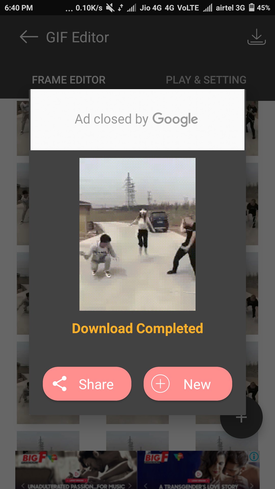 GIF Maker is an app to convert your video to GIF for free. Its easy way to create GIF from your video and share on WhatsApp, Facebook, Twitter, Pinterest, Instagram, Google+ and many more social media.