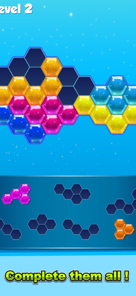 Glitter Blitz - Blocks Puzzle has a perfectly futuristic themed soundtrack to match its gorgeous details. Bold colors and radiant designs cover each level always giving the players a beautiful board to play on.