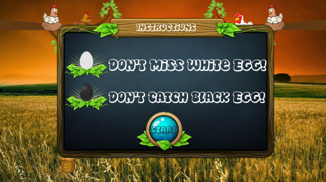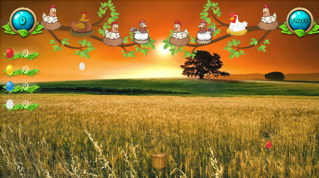 In this game your goal is to catch the white eggs as many as possible in the basket provided. Drag the basket left and right using your finger.