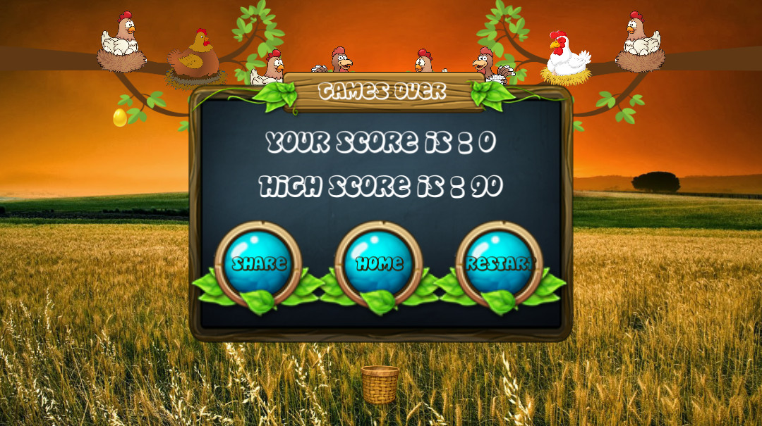 If you catch the black egg, you will lose the game. Latest highest score will be stored in your phone which makes it competitive game when you play it for next time.