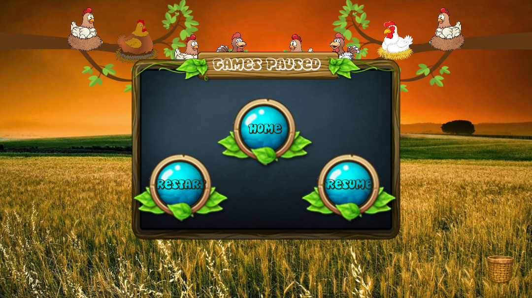 The game is spanned over many different levels which increase the speed and the difficulty of the game. The goal of the game is to catch as many eggs as possible. Once the basket of the character is filled up then, the player needs to move the character to the left or right edge of the screen where the basket is then replaced with a blank one.