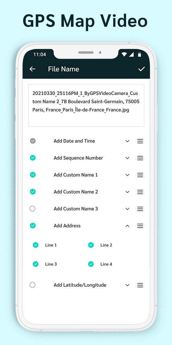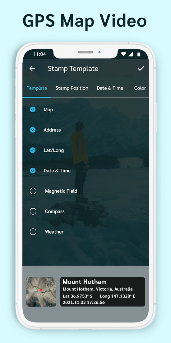 ➤ Add GPS Coordinates such as Latitude, longitude, GPS address, Magnetic Field, Weather, Compass with live GPS tracking