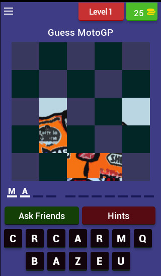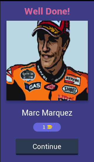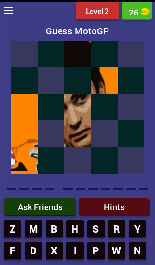 Mainkan Tebak Gambar MotoGP! Tebak nama-nama pembalap MotoGP 2017. Guess MotoGP Memiliki 23 level dan sangat mudah di mainkan, jika kehabisan koin tonton video untuk menambah koin nya..!