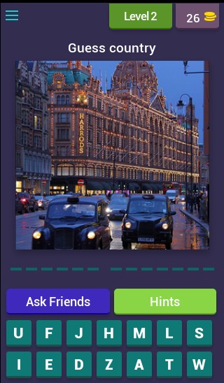 The objective of the game: You will see a photo from a certain country. It can be anything, for example, a tourist attraction, a flag, a country map, a celebrity, a tradition, a game, and much more. Your goal is to guess the country from the photo.