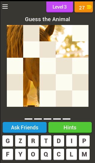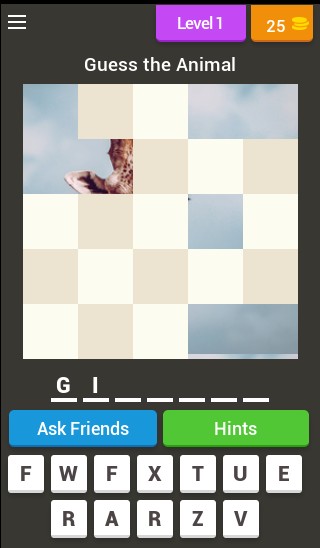 Tap the tiles to reveal hidden squares from the picture. As soon as you think you know what it is, take a guess! The less tiles you open - the more coins you get!