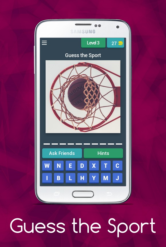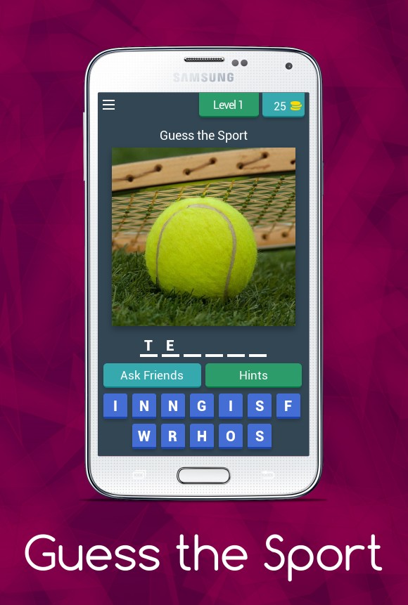 This is a game where you have to guess the name of the sport based on the picture that is displayed.