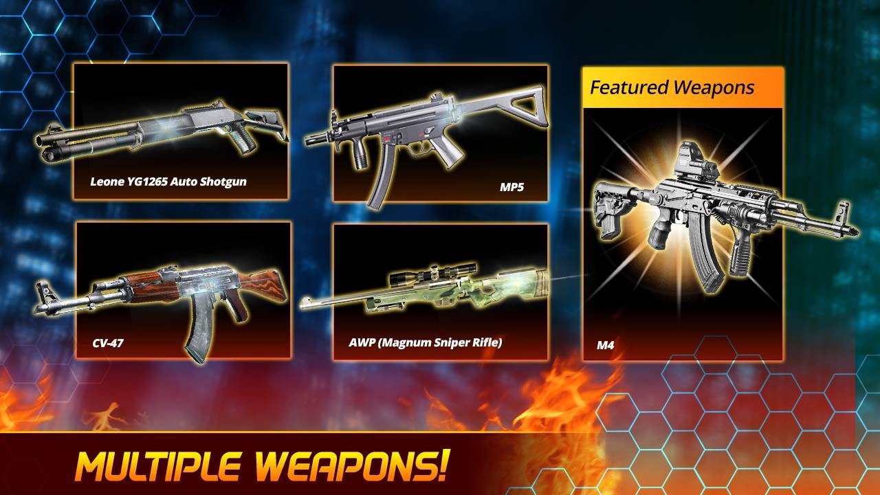 If you are looking for a full 3D Gun Strike shooting game with many different deadly weapons through the bullets with Tech Armor, M202, AWP, M1887 complete combat missions to annihilate deadly terrorists then you are in good luck and try this game now.