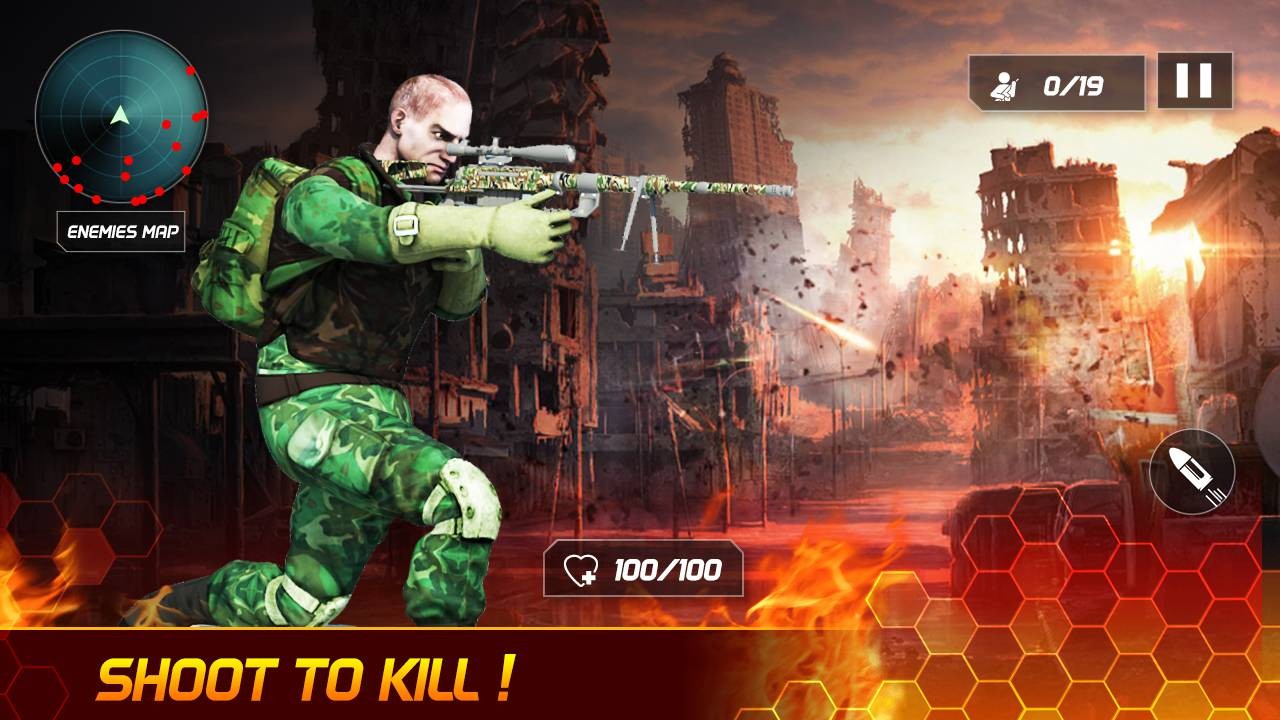 Locate blood killer enemies on the map and shoot. But be aware that the blood killer enemies are equipped with modern weapons also, you need to careful while Shooting. If your health is low then take cover and deal with them by hiding in corners. Blood killer enemies have attacked the city and destroying the peace of the region. Each enemy is well trained and contains deadly shooting weapon which can take your health down fast. Also check corners before shoot because the enemies are cowards and they take cover in corners so be careful about it. Reload your gun before shooting the enemy so that you are totally prepared for them. Moreover, when you shoot a blood killer enemies they will attack you also, so don’t expect a bot standing shooting, they are sharp and can change positions also. They might come from your back too.