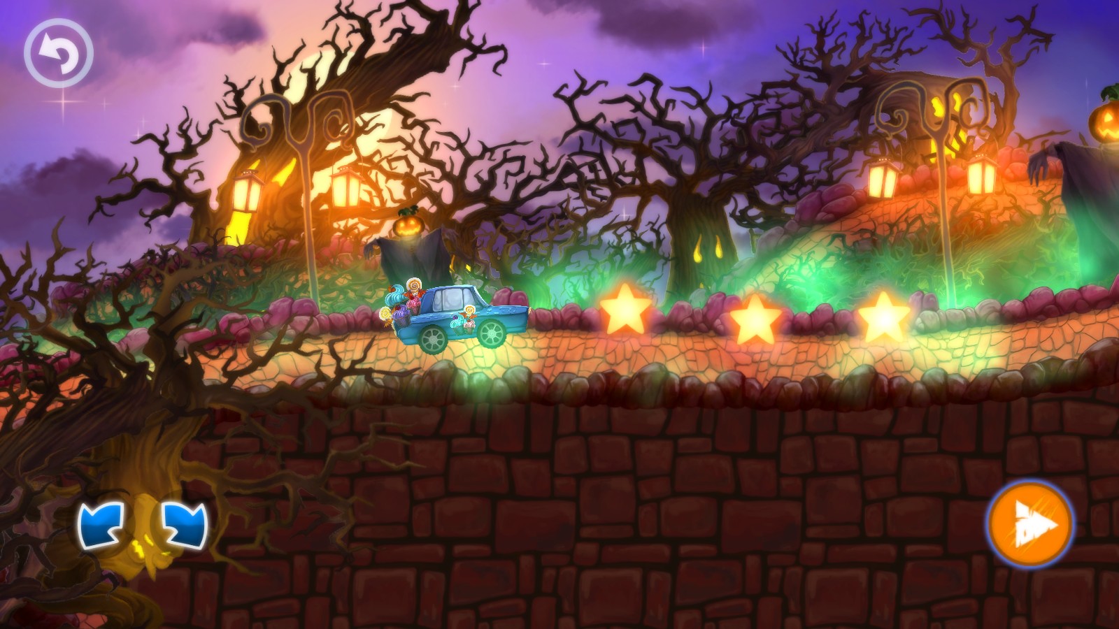 The scariest Trick-or-Treat holiday time of the year has come again! Jump into your favorite racing car and take a ride in this haunting Trick-or-Treat forest. Prepare for the scary drive in this dark and spooky night. Be ready to meet haunting Halloween night creatures such as mummy, vampire, wolf, pumpkin kid, zombie, bat, cannibal donut, flying creepy cupcake, skeleton and many more! Choose your favorite Halloween holiday racing car of 4 given ones: The sCAR, Draculini, Treatster Trickster and Pumpkinstein and ride your car in this scary haunting Halloween holiday forest.