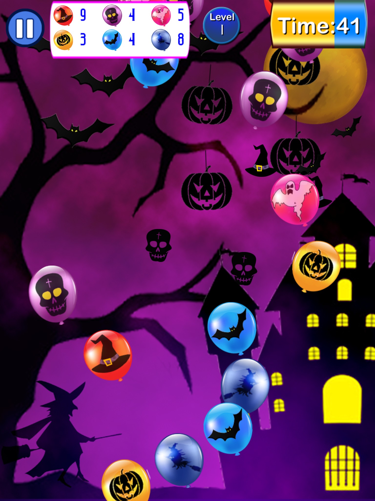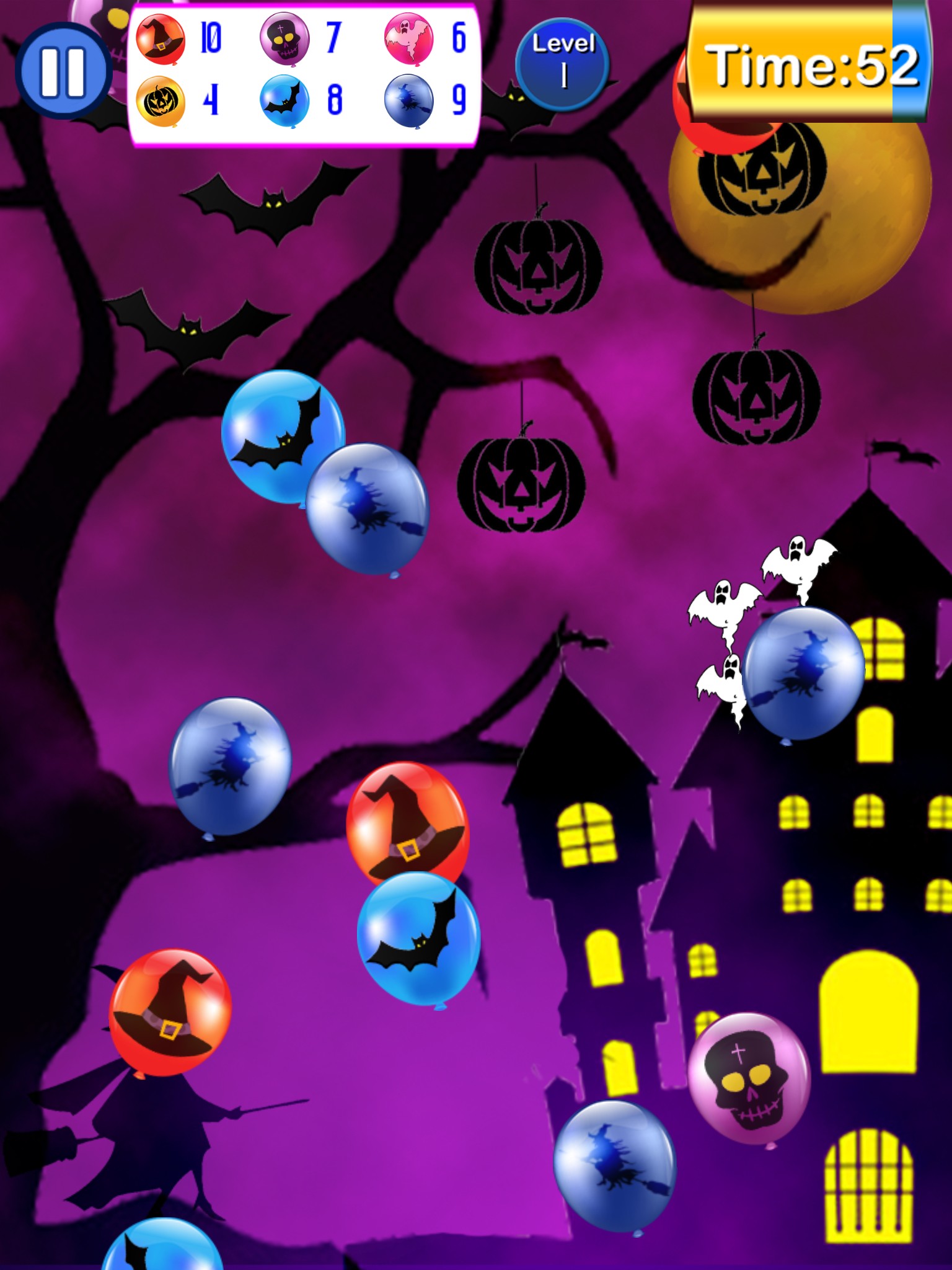 A Classic balloon poping game for kids, with colorful halloween graphics.