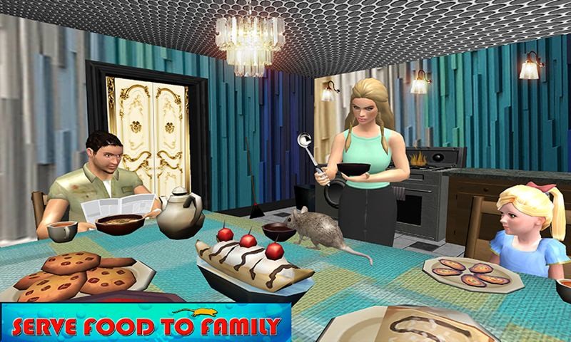 You can also play as virtual MOM and complete your duty is to home neat & clean like beautiful home. Virtual MOM your duty is to maintain your home and wash the dirty dishes in the kitchen. Cook different delicious dishes for the children like noodles, soup and many more. Use vacuum cleaner to clean your beautiful home. Virtual mom go to the shopping mall to buy daily grocery. Happy Family pet is naughty mouse helping incredible mom in fulfilling virtual family activities like washing dishing, gardening, doing laundry & cleaning messy home with kitchen helper. Pet mouse feeling hungry, feed her with leftover family dinner in this game. Many more missions are waiting for you.