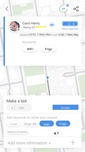 Chaque fois qu'une offre de transport est proposée, le demandeur reçoit une notification; l'utilisateur demandeur peut dialoguer avec le transporteur. Une fois cette offre validée par le demandeur de transport, un identifiant unique (code barre) est attribué à la demande de transport et s'affiche. les deux parties peuvent alors garder le contact a travers la messagerie.