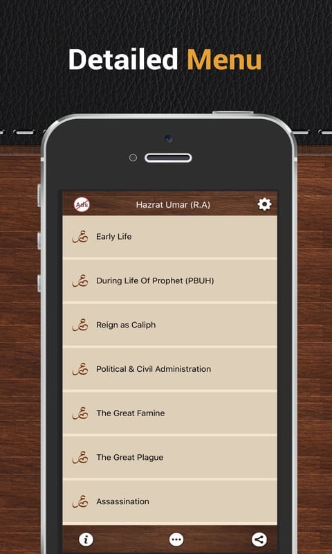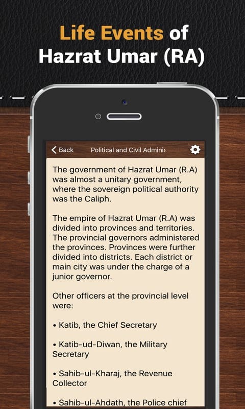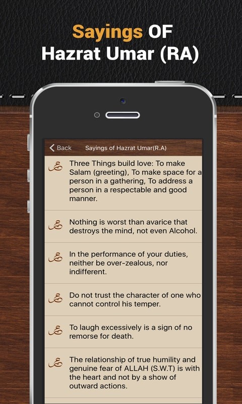 Sections in Hazrat omar (RA) App includes: