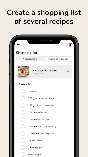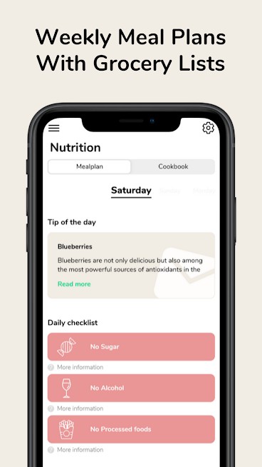 When you build a new meal plan, a grocery list of all the ingredients you'll need for the week is automatically created. Simply grab your mobile, head to the grocery store, and get all your week's shopping done in about 20 minutes with our step-by-step grocery list optimized with standard grocery store layouts in mind.