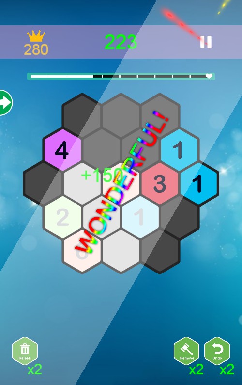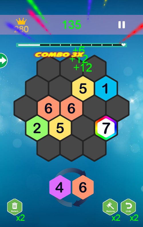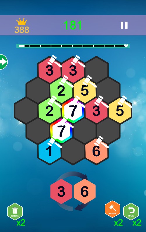 - Use "Refresh" to generate new hexagon block at the bottom.