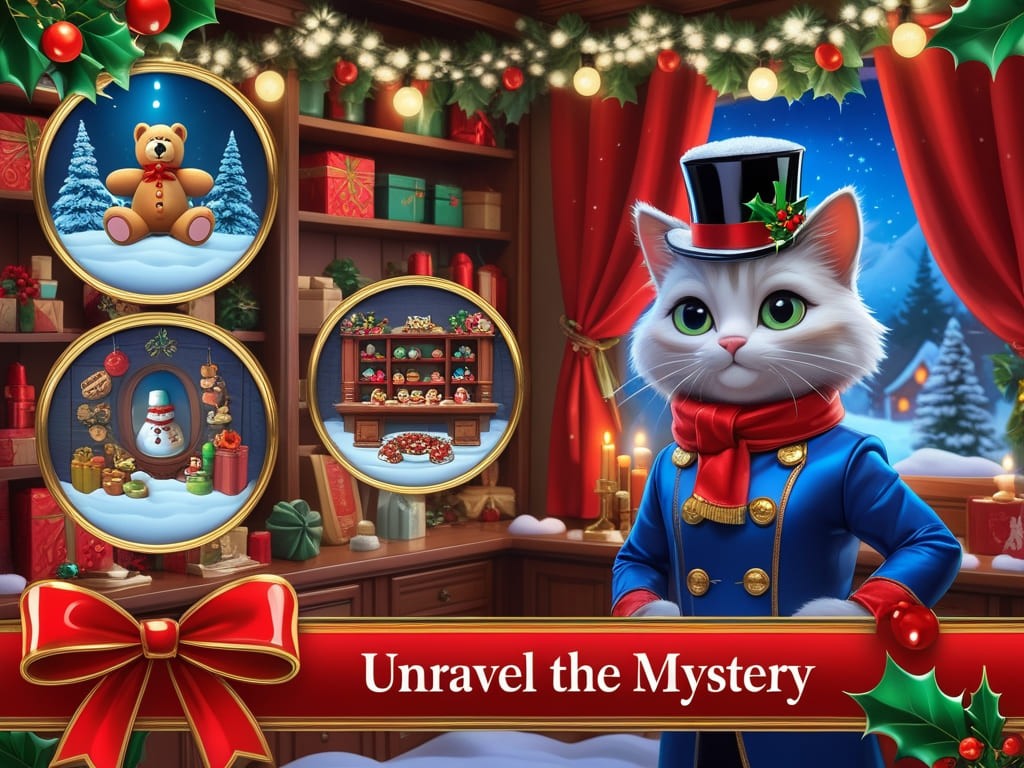 • Journey Through Magical Locations: Travel across a winter wonderland of beautiful Christmas scenes. Explore Santa’s workshop, a magical toy factory, a snow-covered village, and more. Every location is a visual treat filled with festive details and hidden secrets.