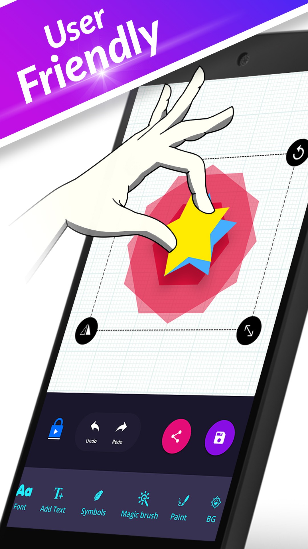 Magic Brush - This magic brush draws sparkling textures and prints that looks great on any Logo Design or photo. This unique tool gives you creativity & freedom of creating an art that stands out. An artistic brush that never goes out of fashion to create logo art or text art. Select eraser to erase the magic brush painting.