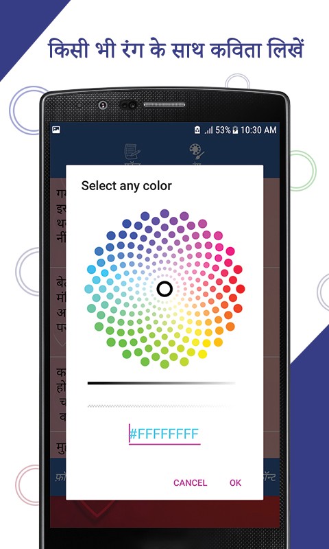 Writing Hindi Poetry and hindi quotes on photo is the latest mst app idea, magnet poetry, stylish and very trending app for social purpose like update status, show your love to your lover, show friendship with best friends and write hindi shayari sad songs. Say your dil ki baat with Writing Hindi Poetry on Photo sairi app.