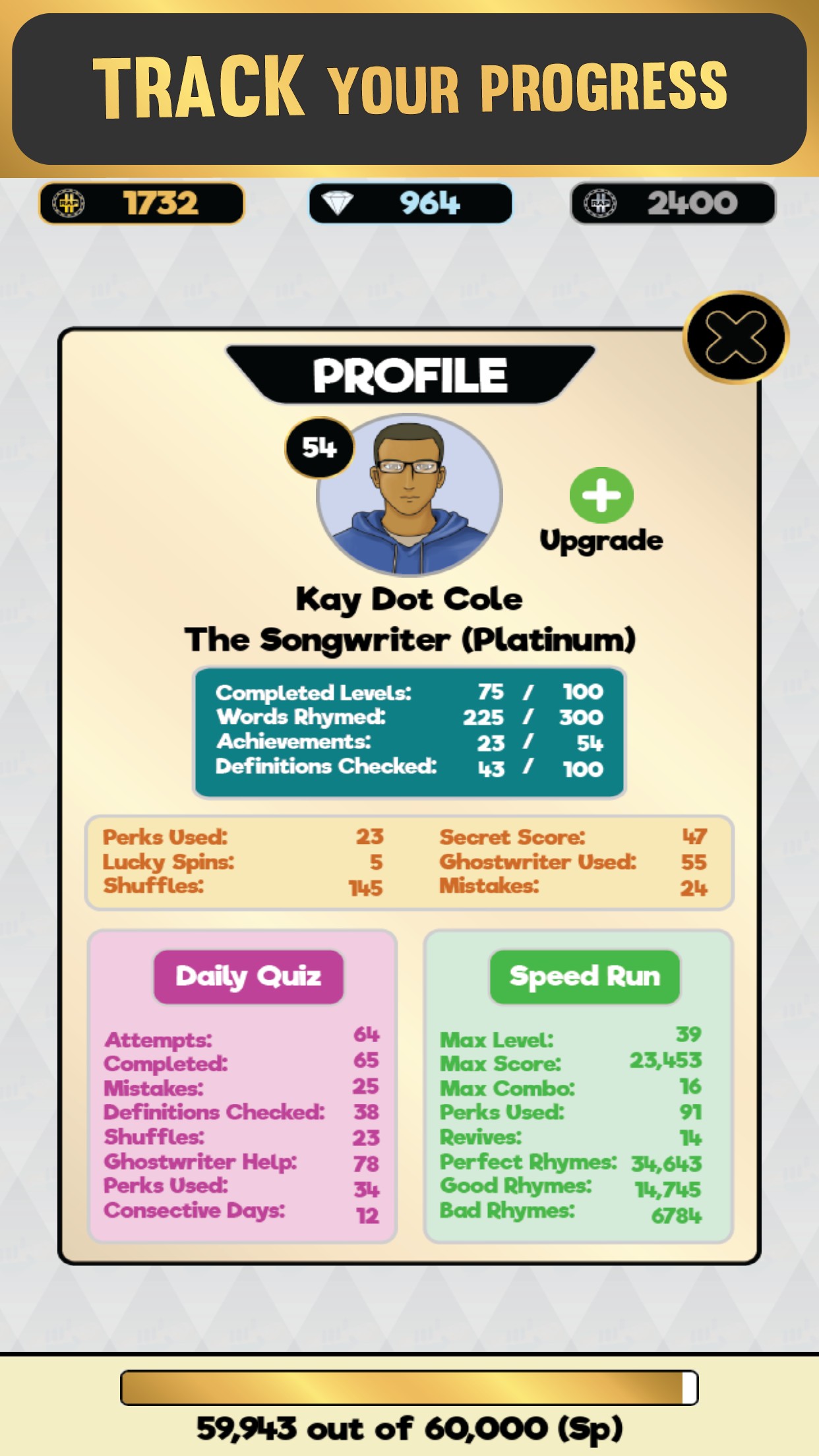 You can set your own nickname and customise your appearance and see your stats to show your friends how good you are at rhyming