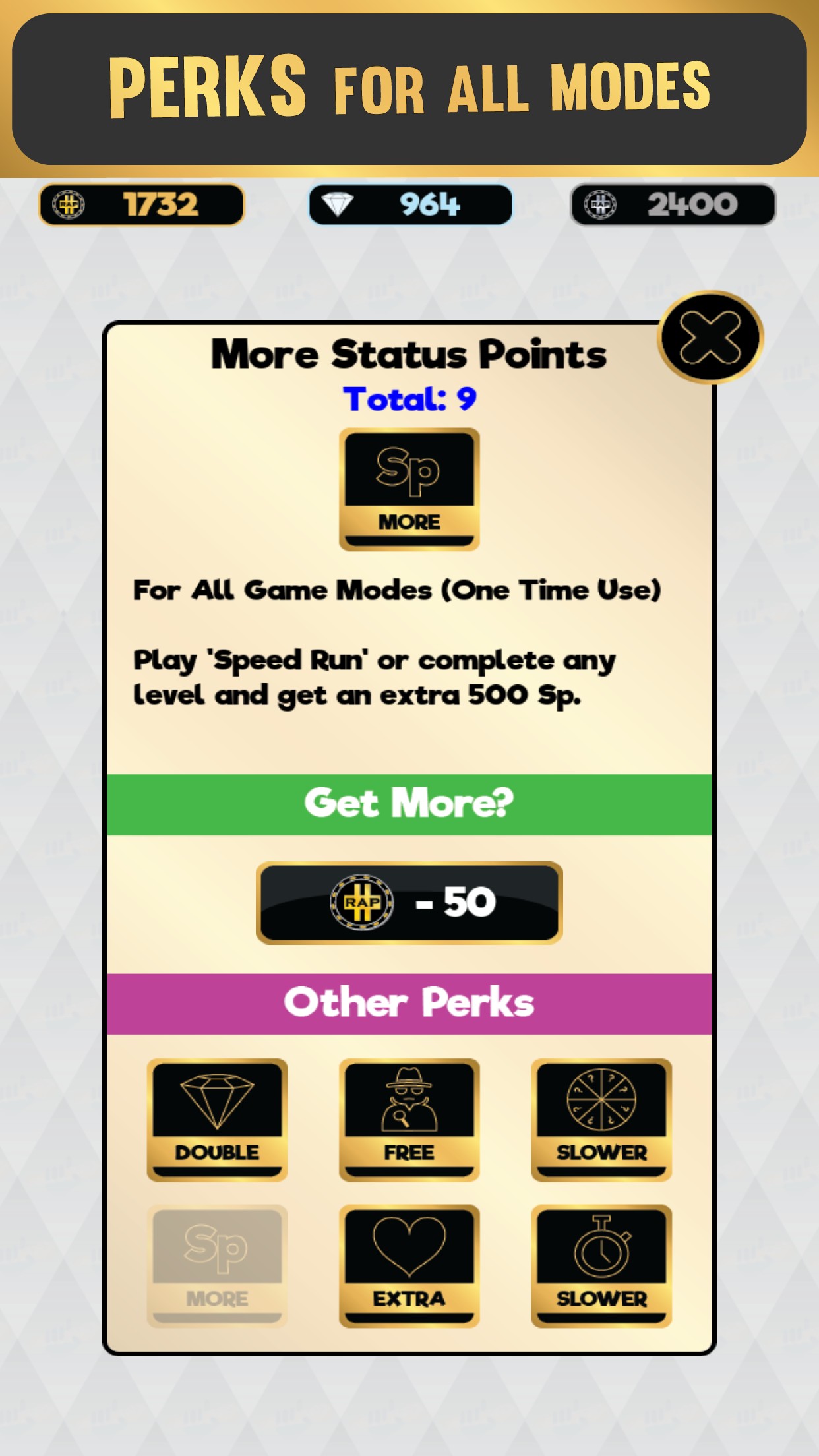 Want a harder challenge try the Daily Quiz where you will attempt to solve puzzles daily to gain rewards and level up your STATUS rank much more quicker