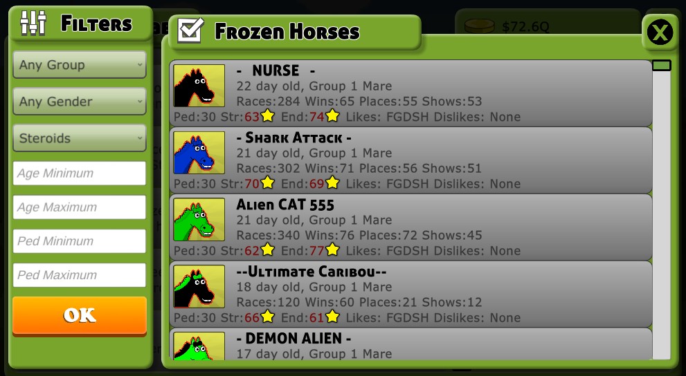 Earn some extra cash by studding out your stallions. VIP players can sell their horses in the market, view advanced horse stats, equip saddles and more...
