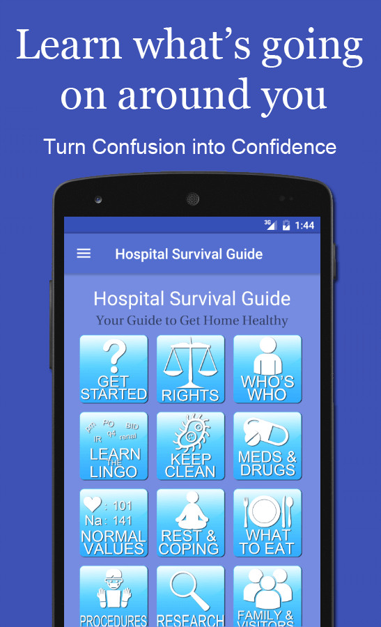 Hospital Survival Guide walks you through making sense of the confusing hospital environment. Whether you are inpatient or outpatient, you will learn to speak the medical language, build a better understanding of medical procedures, and find ways to rest, relax, and recover.