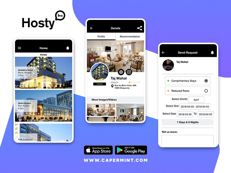 Hosty Influence is One of the best hotel searching app Design & Developed by Team Capermint Technologies.