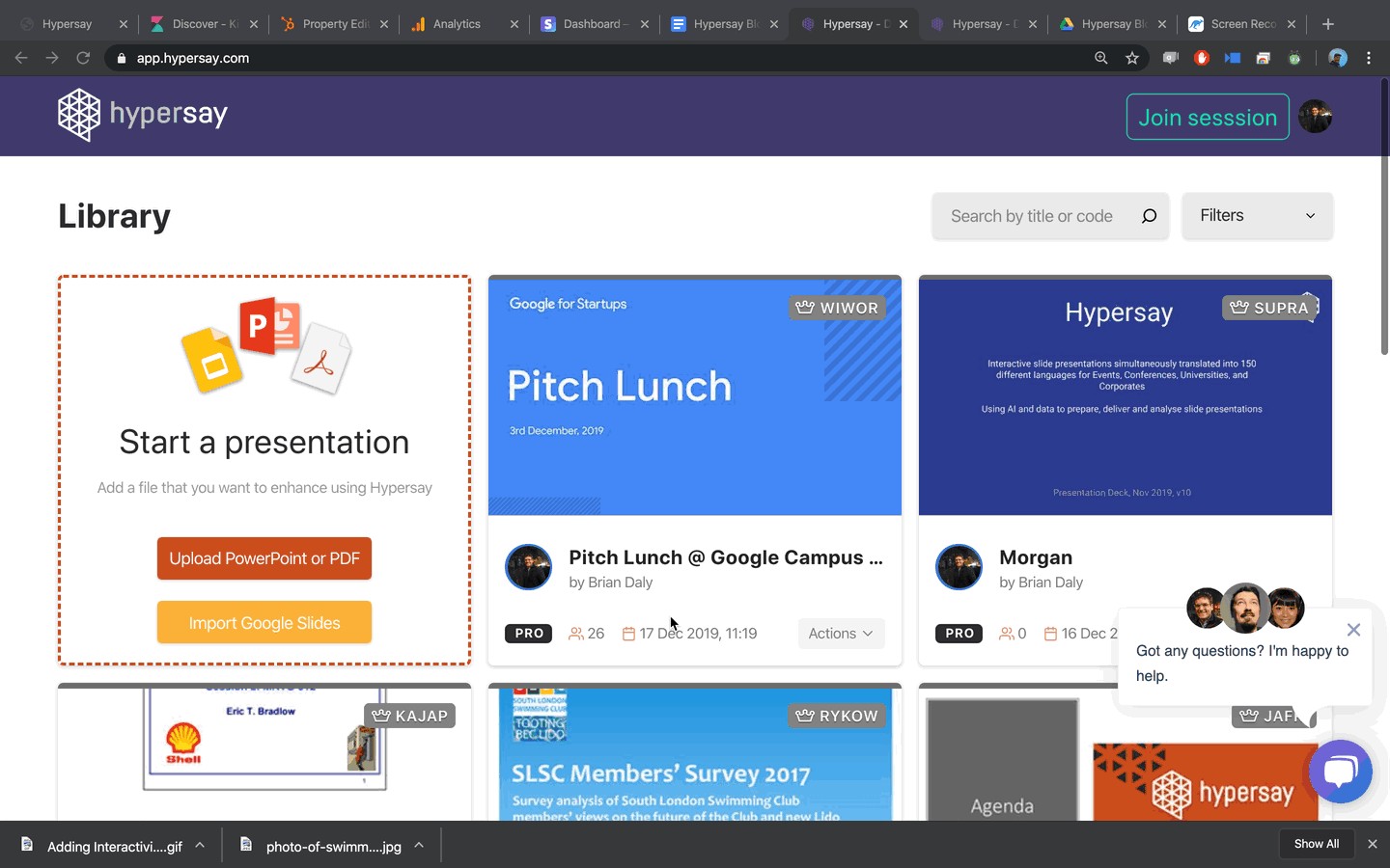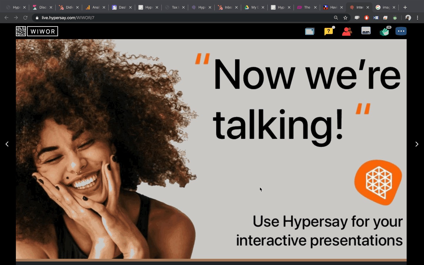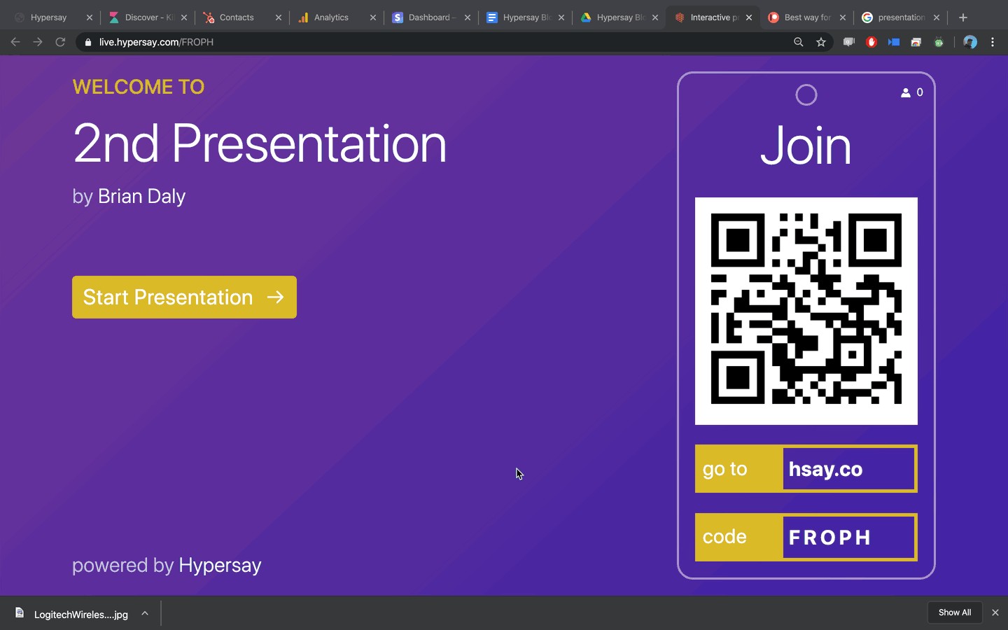 1. A new Welcome Screen with QR Codes. Joining a Hypersay is now easier with large QR codes for your audiences to use to join the Hypersay Session. The QR code on the Welcome Screen is expandable. There is a permanent QR code in the top left-hand corner of every slide.