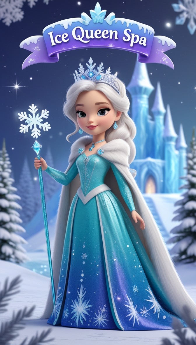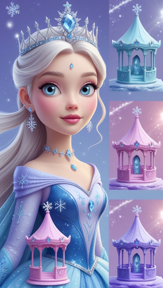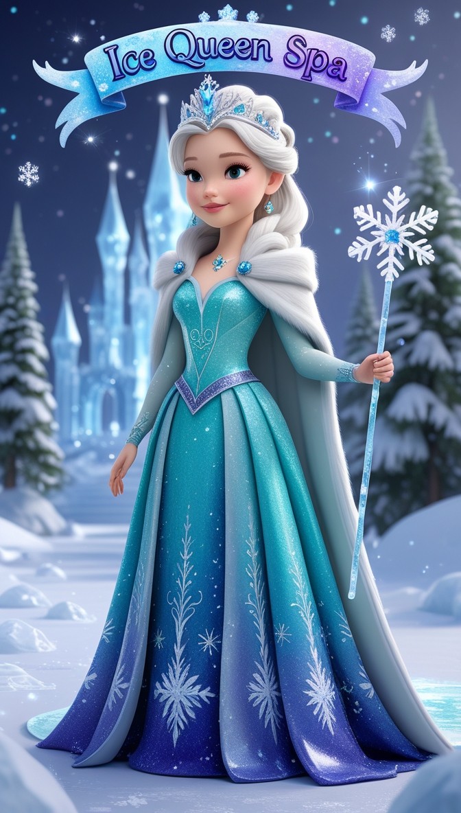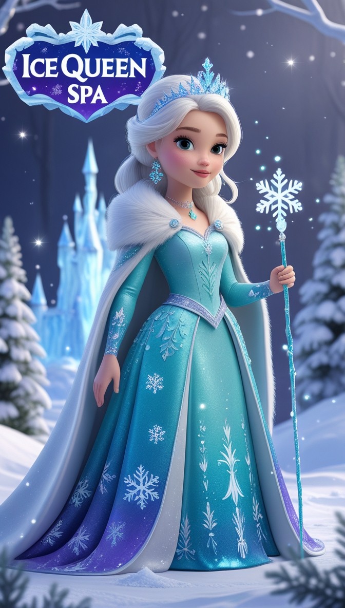 Begin your royal pampering at the serene Ice Spa. Give the princess a refreshing facial using shimmering ice masks, gentle cleansers, and soothing toners. Shape her eyebrows to perfection and let her skin glow with a healthy, frosty radiance. Prepare her for her grand transformation with luxurious spa treatments that are as magical as the northern lights.