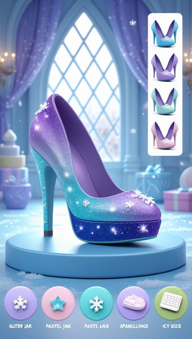 The Dress Up stage is where the magic truly unfolds! Dive into a magnificent wardrobe filled with hundreds of exquisite gowns, sparkling outfits, and regal accessories. Mix and match elegant dresses, enchanting skirts, and stylish dress to create the perfect ensemble. Adorn your princess with shimmering tiaras, delicate necklaces, glittering earrings, and elegant gloves. Choose from a wide selection of dazzling shoes that will make her feel like she's walking on ice. From grand ball gowns for a royal gala to chic, everyday winter wear, the fashion possibilities are limitless!