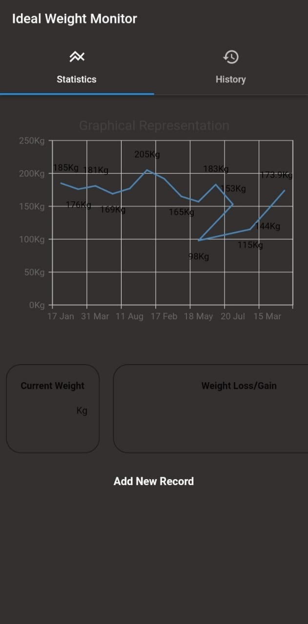 Follow the changes in your weight by recording daily and stay within your ideal weight range.
