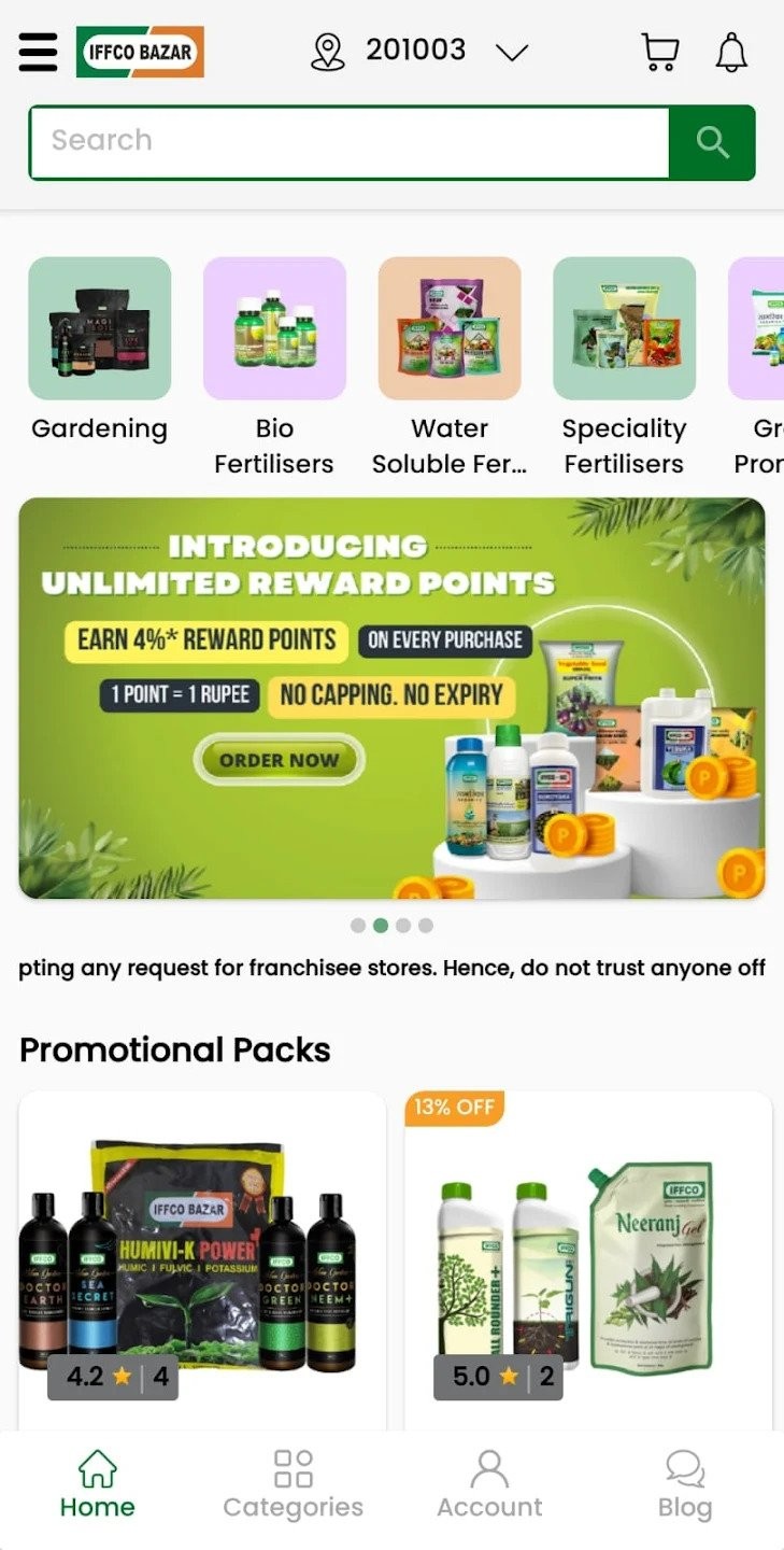 IFFCO eBazar Ltd (IeBL) is a 100% owned subsidiary of IFFCO Ltd., offering a modern ecommerce experience to Indian farmers. This is a one-stop shop for all gardening and agriculture-related needs.