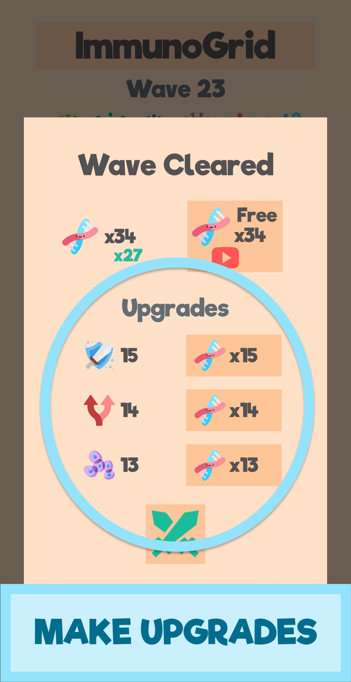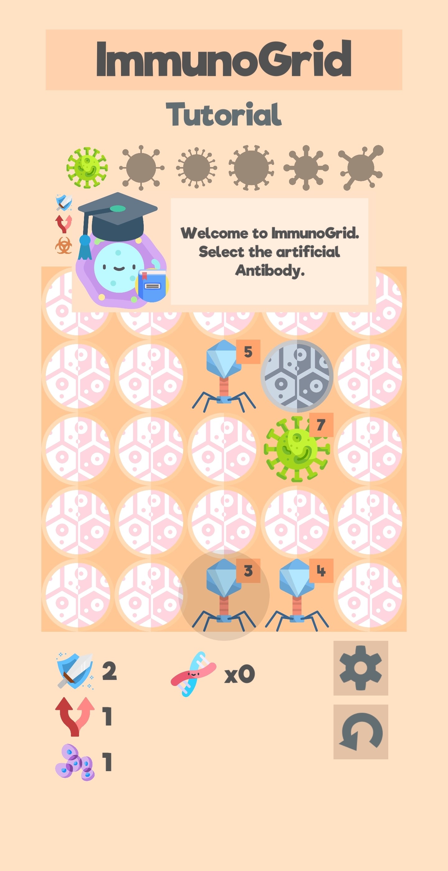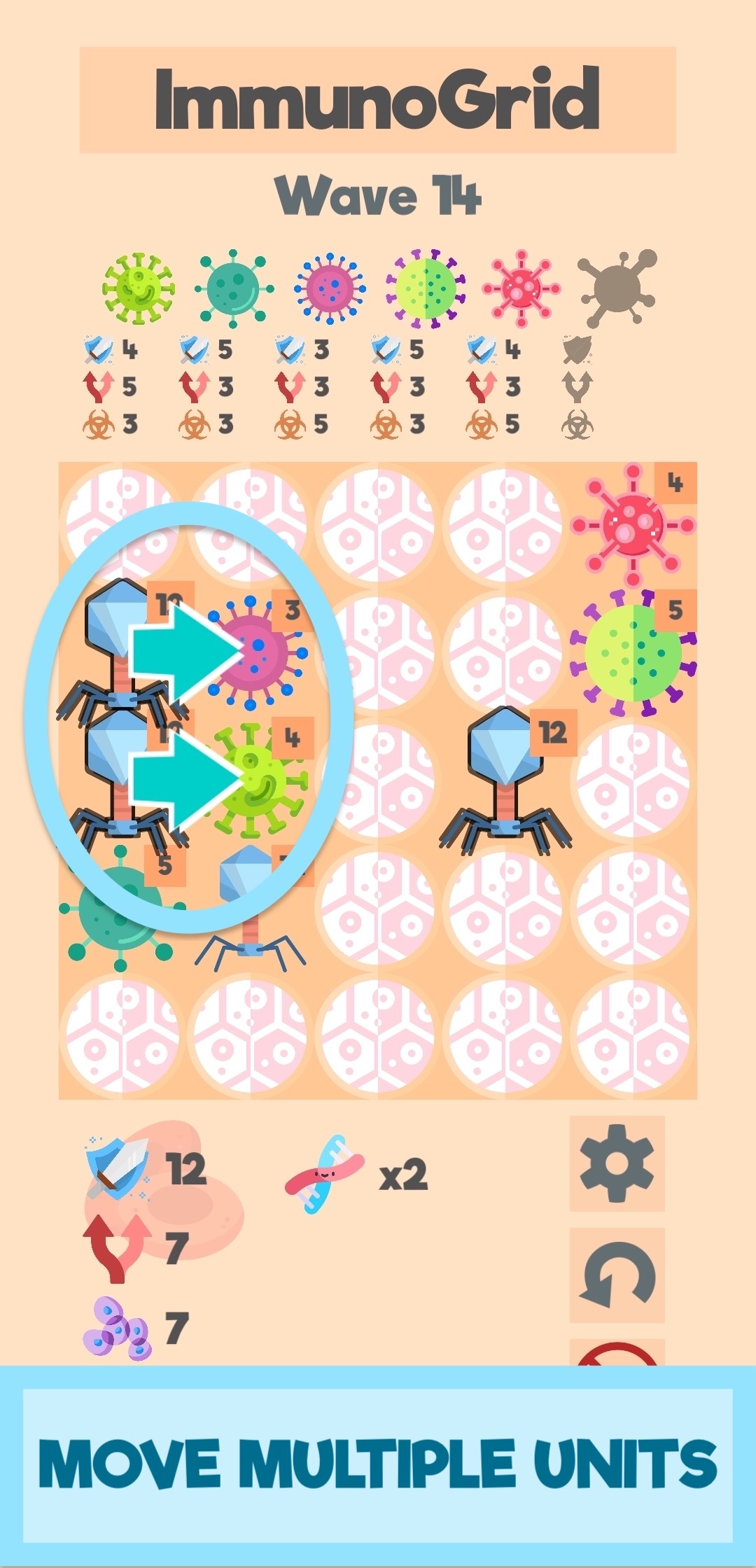 Merge antibodies for extra strength and defeat the enemy bacteria before they have a chance to multiply and infect nearby cells. Make upgrades after each wave to strengthen your genetic army of antibodies and fight off the endless waves of relentless bacteria.