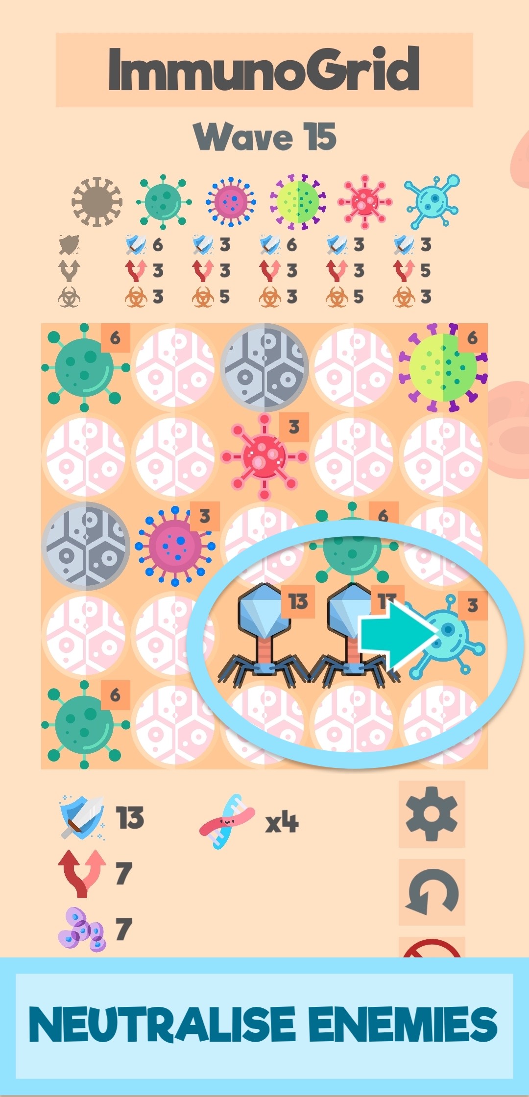 Take control of specialised genetic antibodies to fight off waves of invading bacteria.
