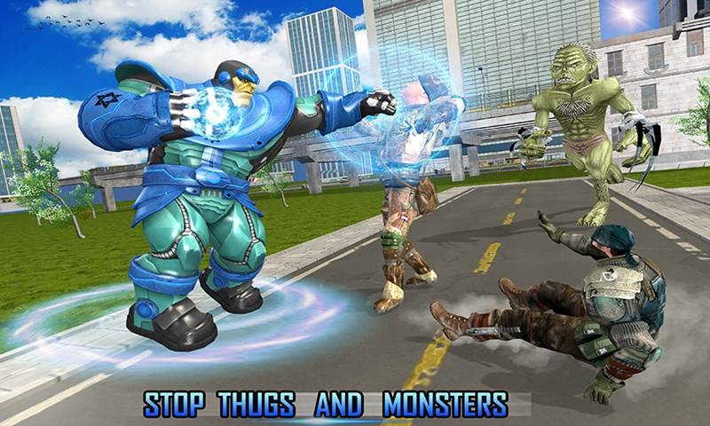 In start of the game some gangsters snatch bag from the civilians forcefully. As a super Monster hero you will need to come and fight with these evil powers. After that you will need to go to the point and find police station so that police can caught these gangsters with the help of Infinity hero. After that you will need to go to the target point in time by using fast heavy weight Jeep. In the next levels gangsters and monsters are trying to destroy the city as well as trying to slay the civilians. You will need to fight them with your fighting skills and kill them all otherwise they will kill you. If the gangsters kill you then you failed your level. So be careful fight and kill your all enemies