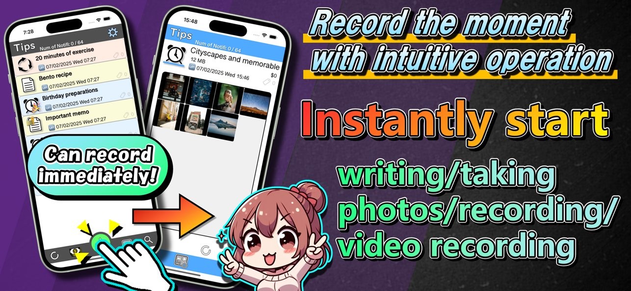An ultra-high performance memo app that allows you to centrally manage information such as text, multimedia, income and expenditures.