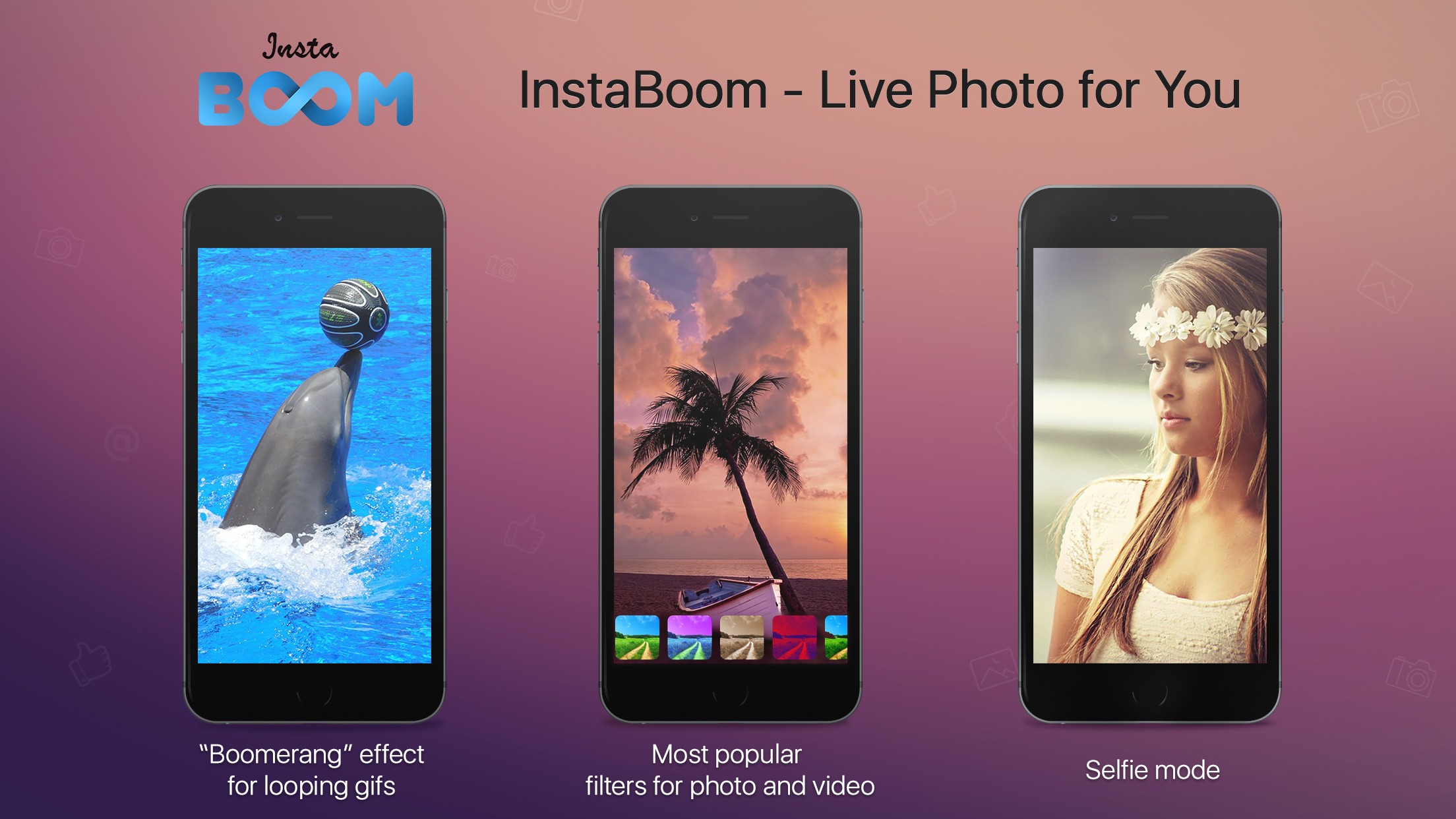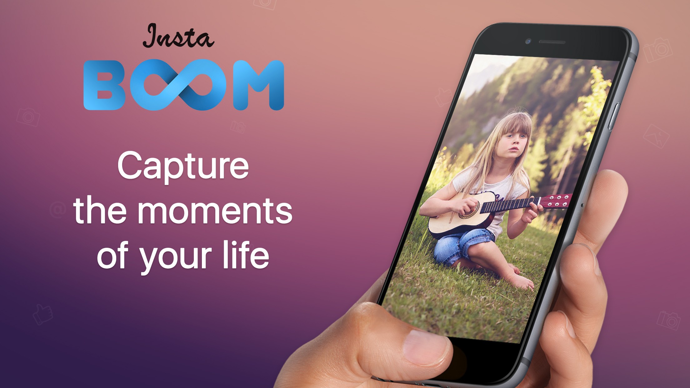 InstaBoom lets you shoot ONE-SECOND videos that quickly play forwards and backwards. The so-called "boomerang" effect helps to create small cinematic masterpieces shot by shot - infinite shots, if you want - as long as the video is no more than 5 seconds in length.