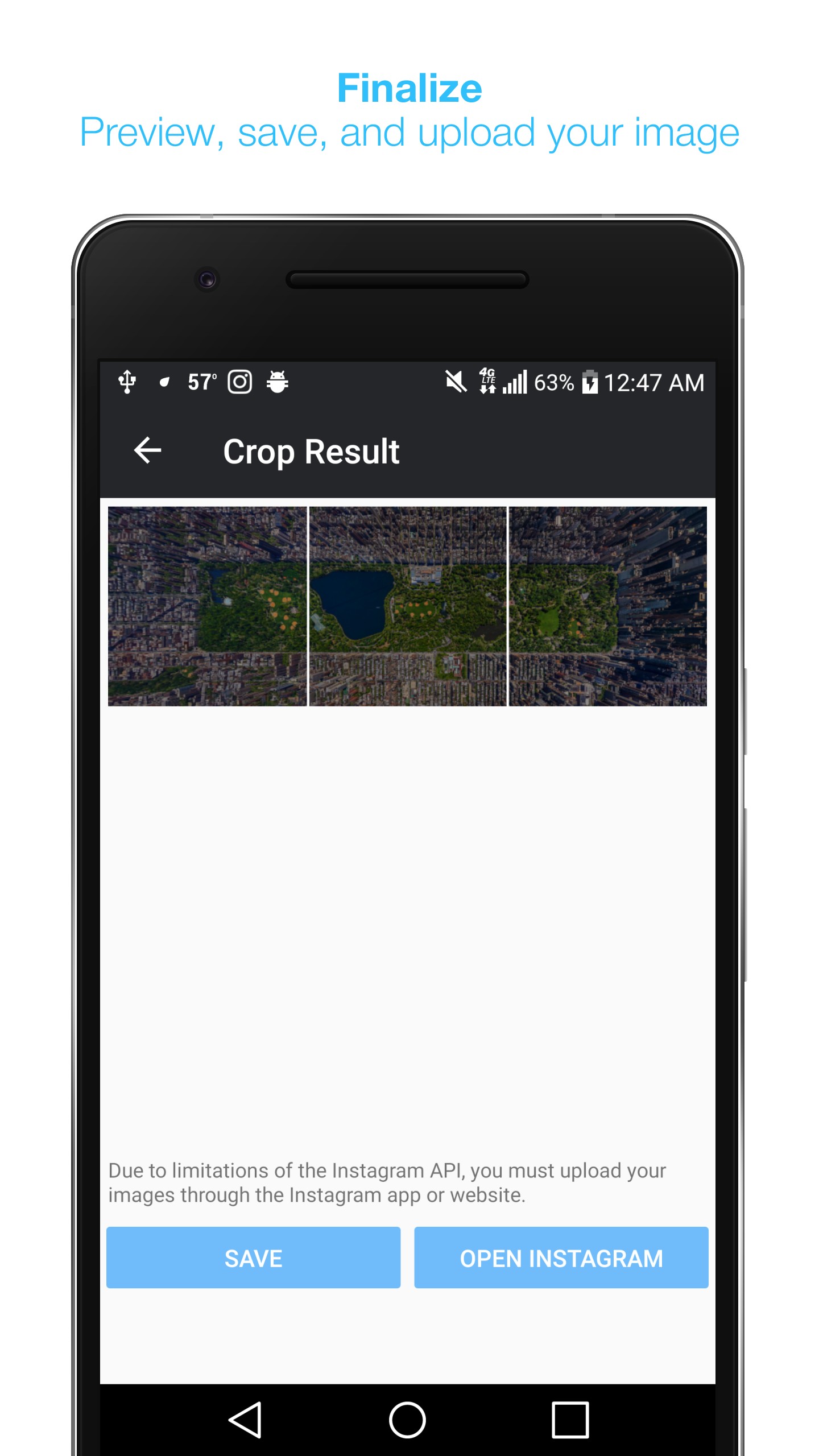 • Open Instagram directly from the app for easy upload