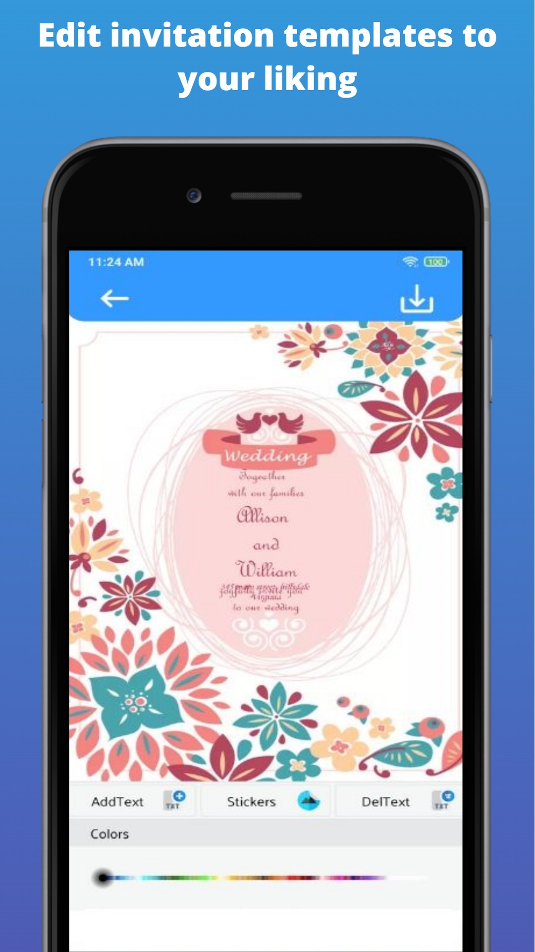 * Add Custom Text with multiple color fonts to your invitation cards
