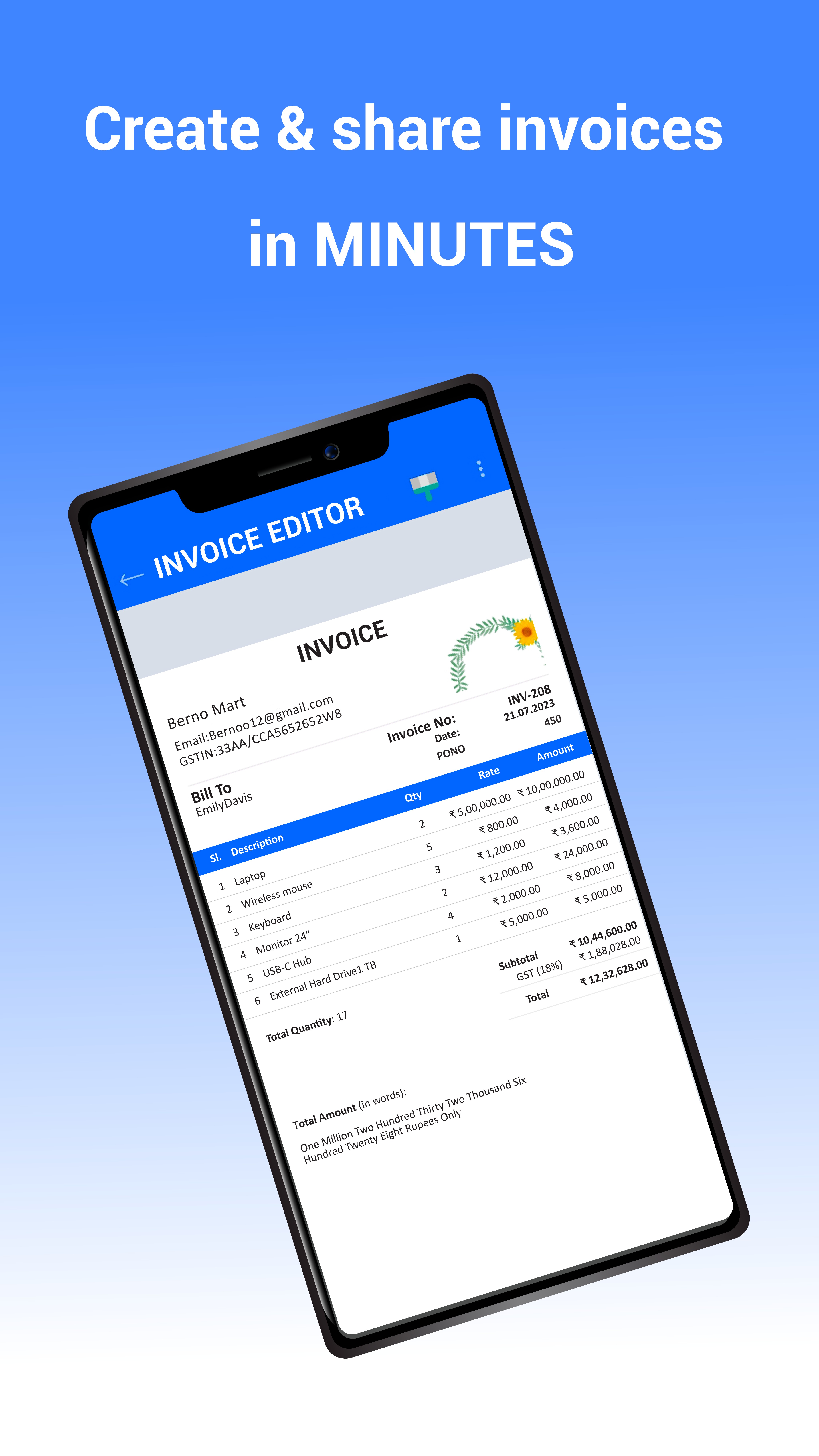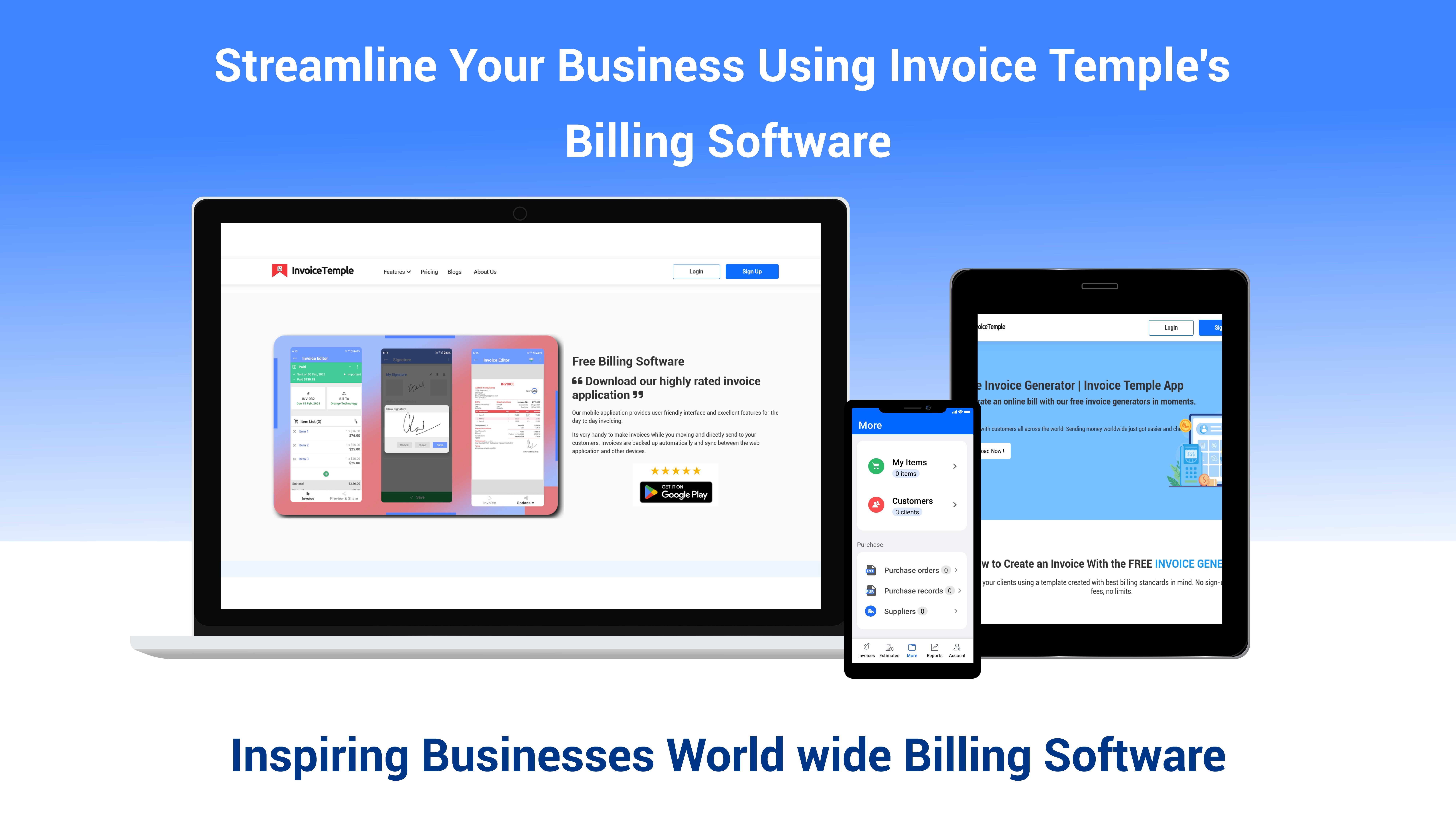 Invoice Temple app provides excellent features for the small business owners to generate professional invoices, estimates, bills, and get paid faster. It is very simple to create invoices, bills, and send invoices to your clients in minutes. The app is compatible with multiple tax systems like VAT, GST, IGST, CGST, etc. You can manage your inventory/stocks and bookkeeping in the same app. Invoice Temple also offers a free invoice maker that provides 10 free invoices/estimates/purchase orders every month, with the option to upgrade to the premium version for unlimited invoices and estimates.