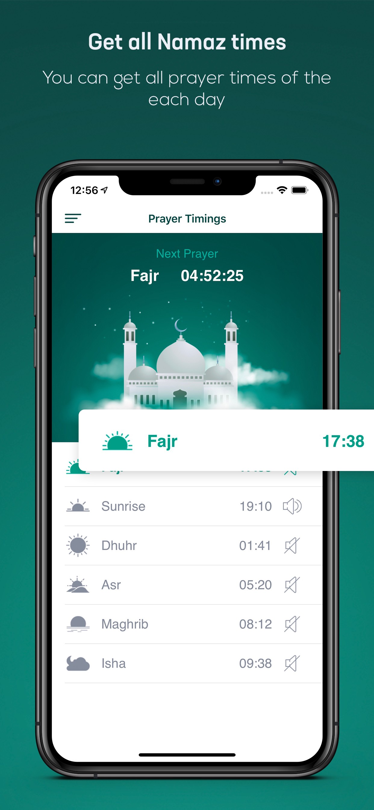 - Show the times for the Fajr, Sunrise, Dhuhr, Asr, Maghrib and Isha prayers