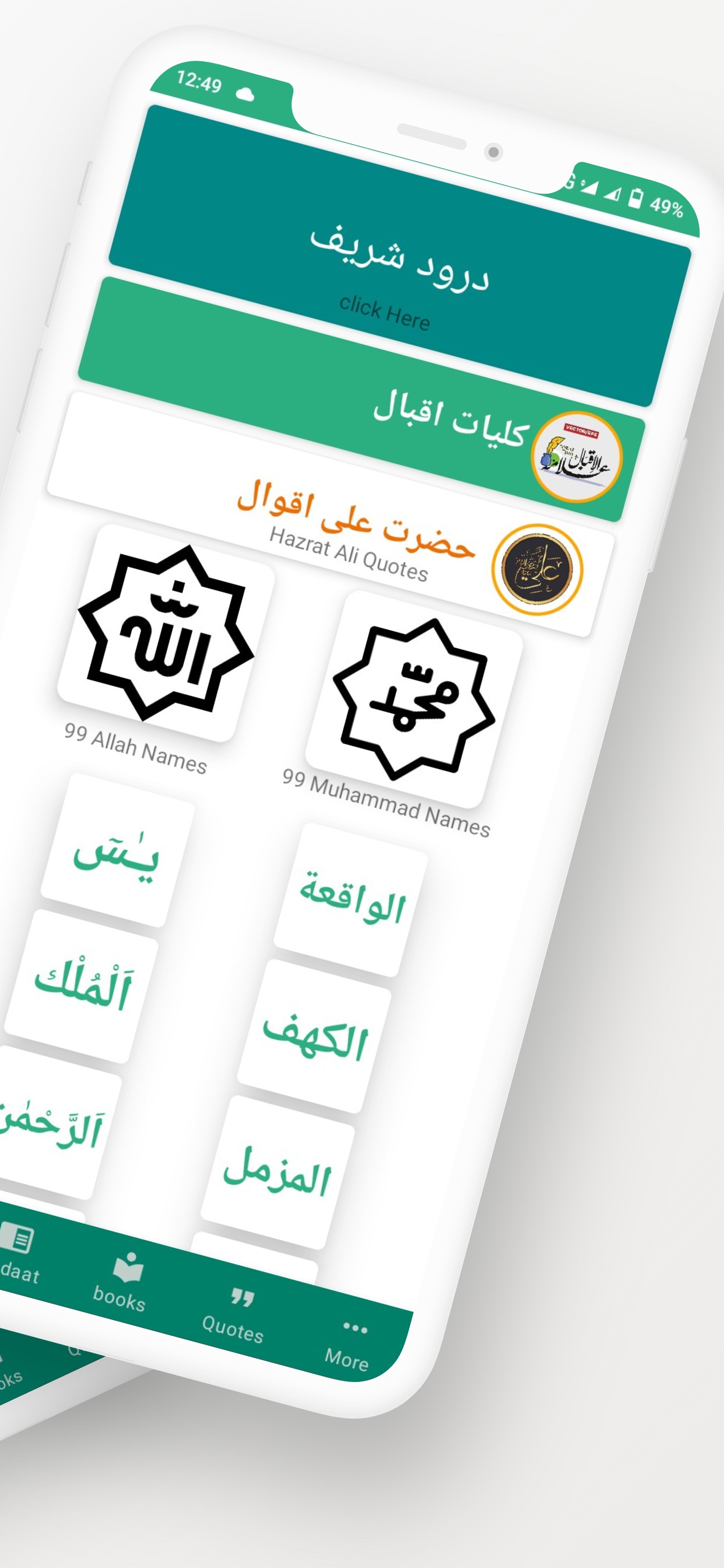 4 kul (چار قل شریف) and 6 kalma(کلمے) are also part of app . 6 kalma have the counter feature .
