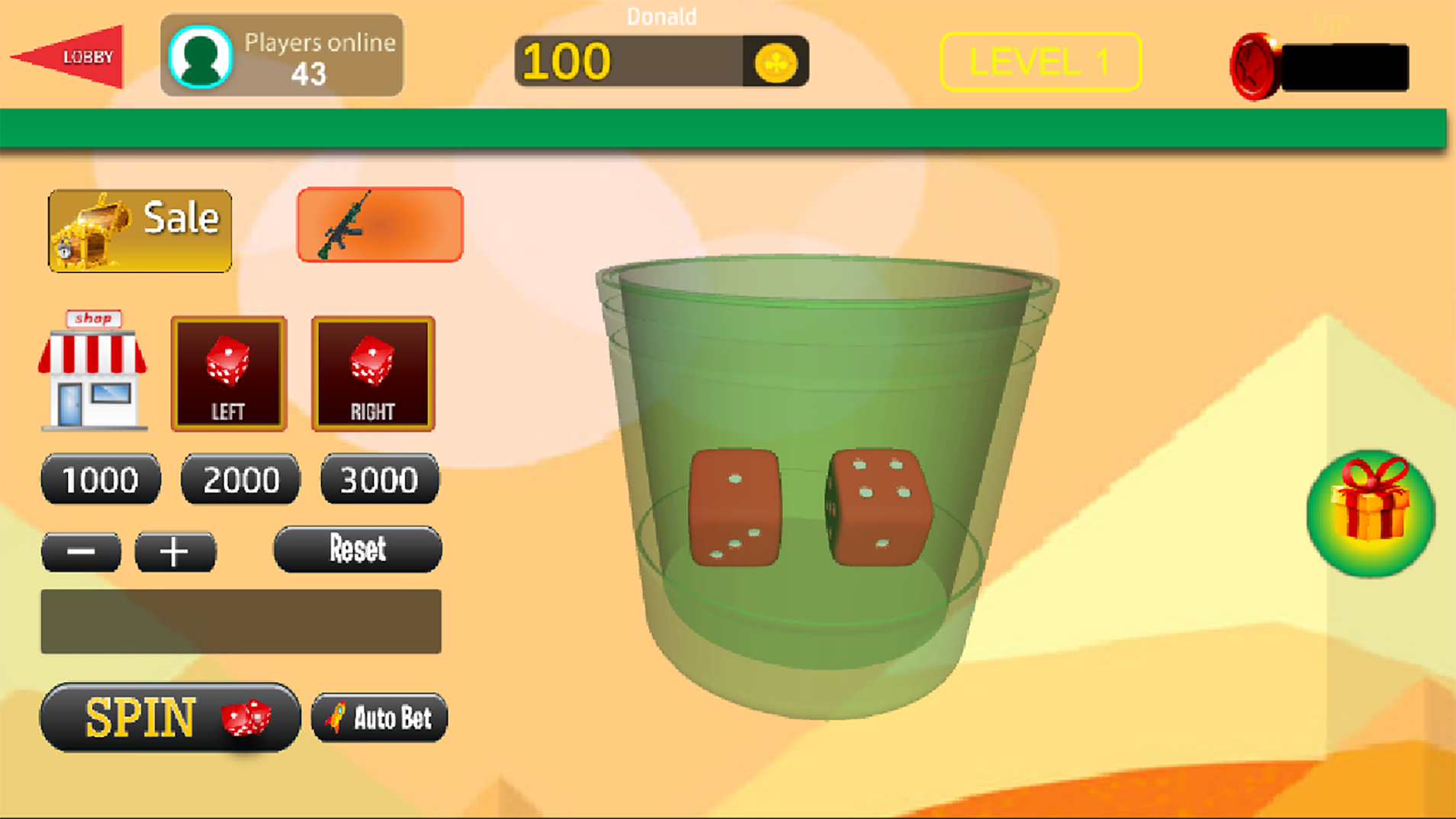 ROLL DICE is a six-sided cube with the numbers 1-6 placed on the faces. The value of the roll is indicated by the number of "spots" showing on the top. Choose the right or the left side of the cube, select the amount you want to bet with, or just the auto bet option and start spinning.