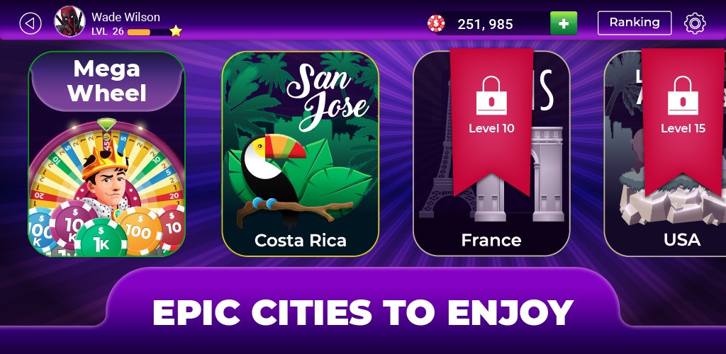 Multiple themes and levels for your enjoyment. Take a trip around the world... start in Costa Rica and end in beautiful Las Vegas!