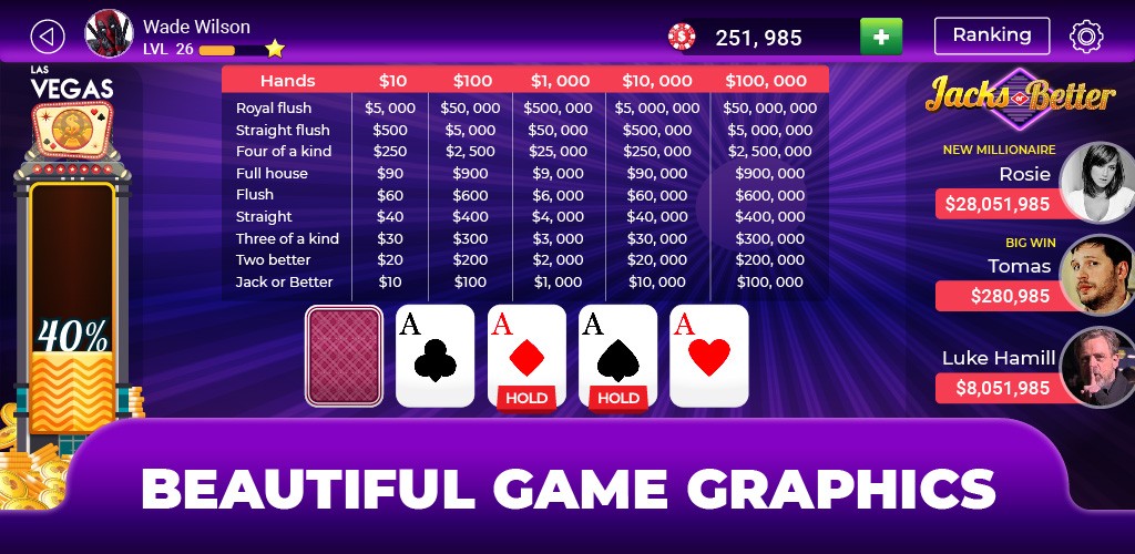 The game combines great graphics with enjoyable animations to keep you satisfied! From the shuffle of the cards, to the well planned and interesting game cues!
