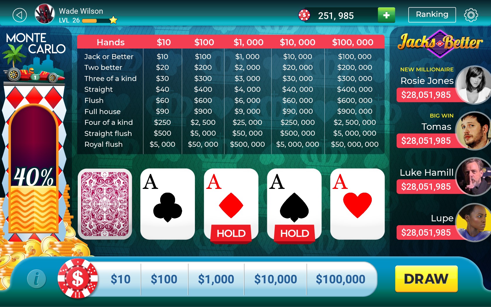 Social Experience - Share your scores, invite your friends! Let your people know how GREEEEAT you are at Jacks or Better!