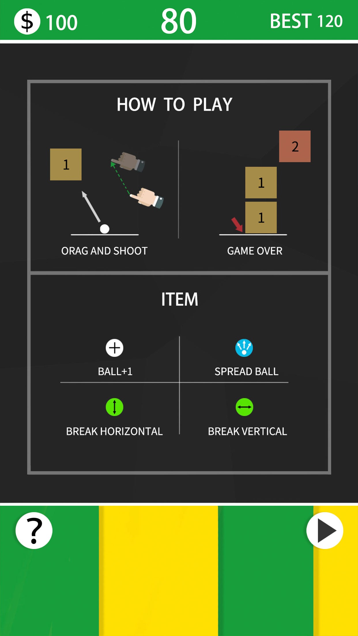 By collecting these power-ups, you may extend your life, increase the damage radius and effect all balls of row or columns, and the chance for a random direction when the ball hits a shape.