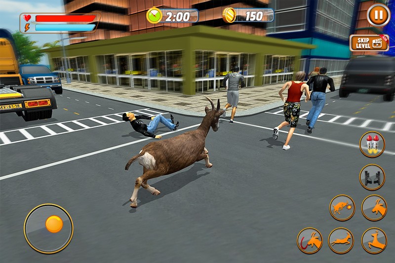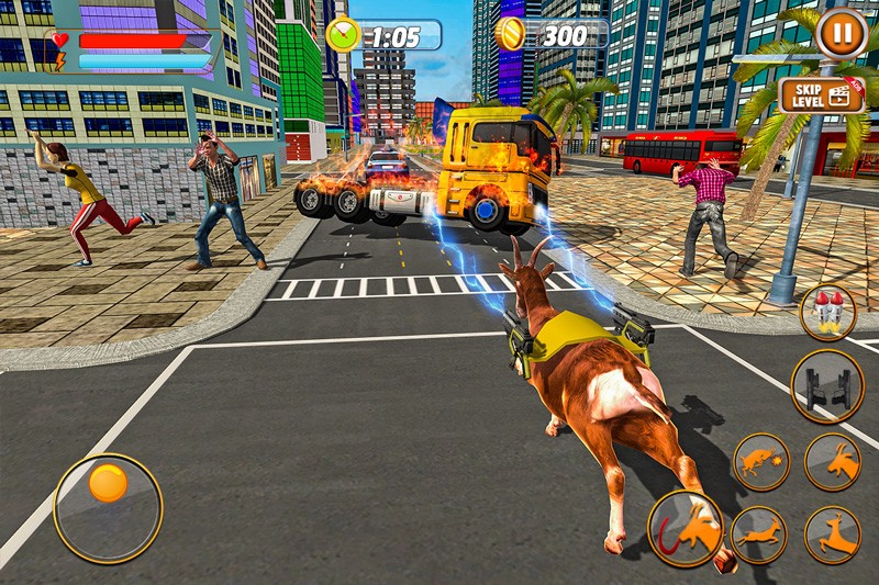 Your aim is to cause destruction, mess or wreck, demolish and smash everything also annoy citizens. Beware from police and army with tanks and deadly weapons because they can strike without any warning in goat city attack simulator. Attack & crush with your flying goat city survival powers. Complete goat revenge and increase stamina & health.