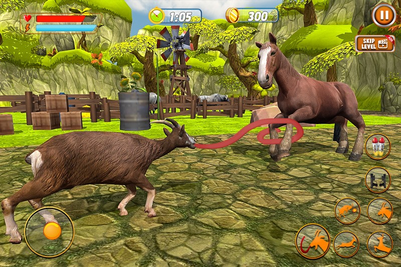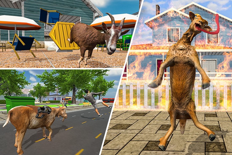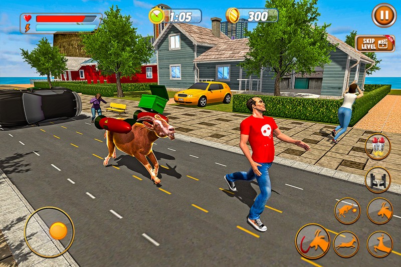 In this scary goat simulator use your long tongue to pull vehicles, army tanks and humans. Jump across the crazy obstacles and wander as crazy goat. Wild angry goat attack and goat survival is all about destruction & chaos in town with free to play goat fight game.