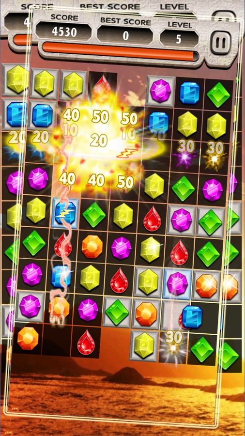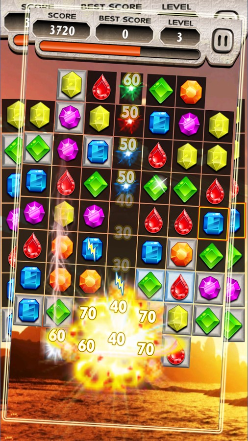Gameplay is absolutely simple to suit everyone's taste. Just swap and match 3 or more same jewels to eliminate them, try to make more combos. The mazing powers and lightning bolts increases the fun of the game. It's simple, but once you play, you will find it very enjoyable and challenging. Difficulty increases with every level up increasing the challenge! Spend your time to get the charm of the game, and be the King of jewels with this free Jewel game.